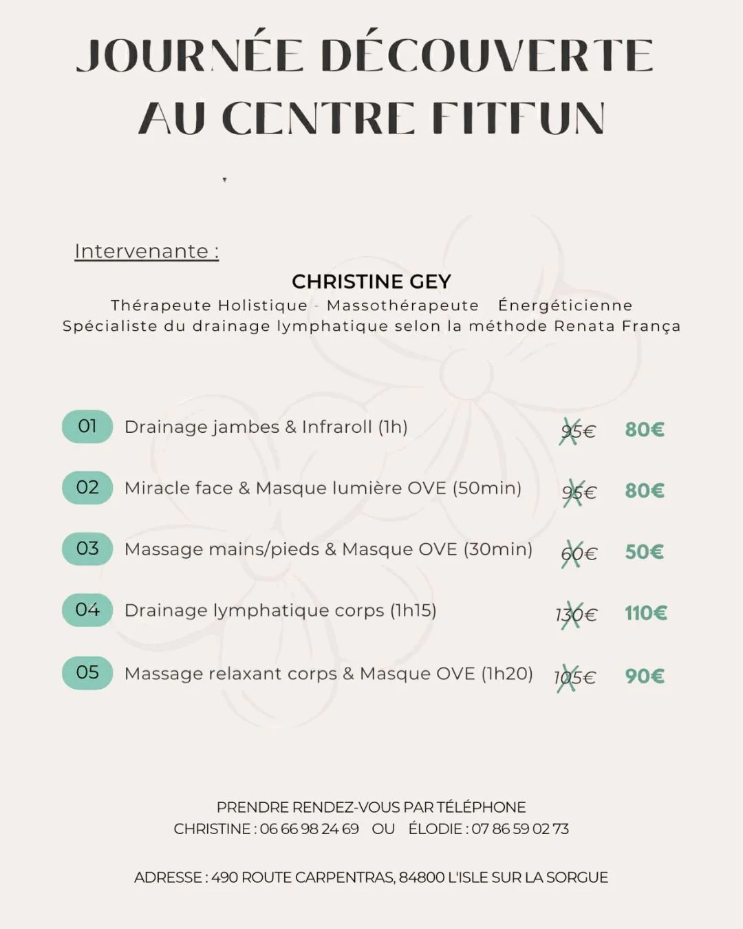 Alors, pourquoi attendre, je reçois le 20 Janvier 2026, Christine GEY, pour des prestations en massage corps, mains/pieds et visage.